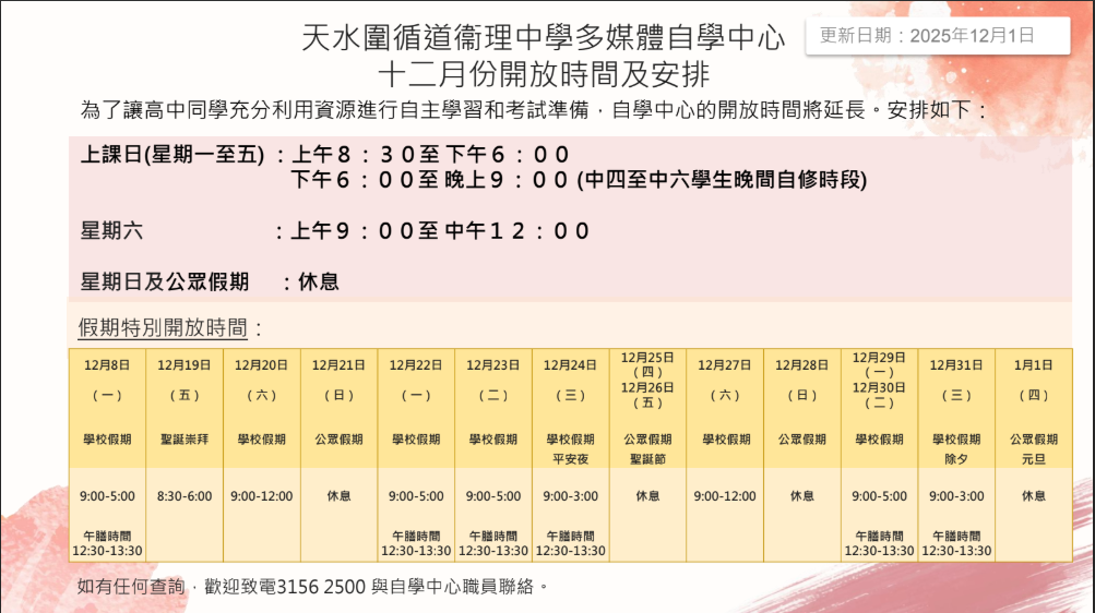 特別天氣上課指示